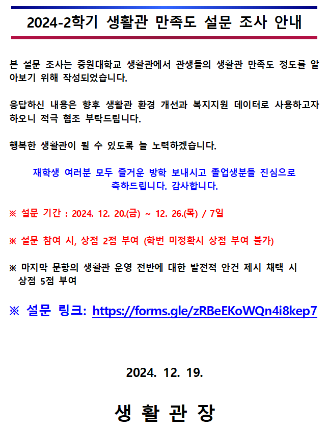 | 2 | 2025년 2학기 생활관 상점 보상제 알림 | 생활관관리자 | 2025-11-04 | |