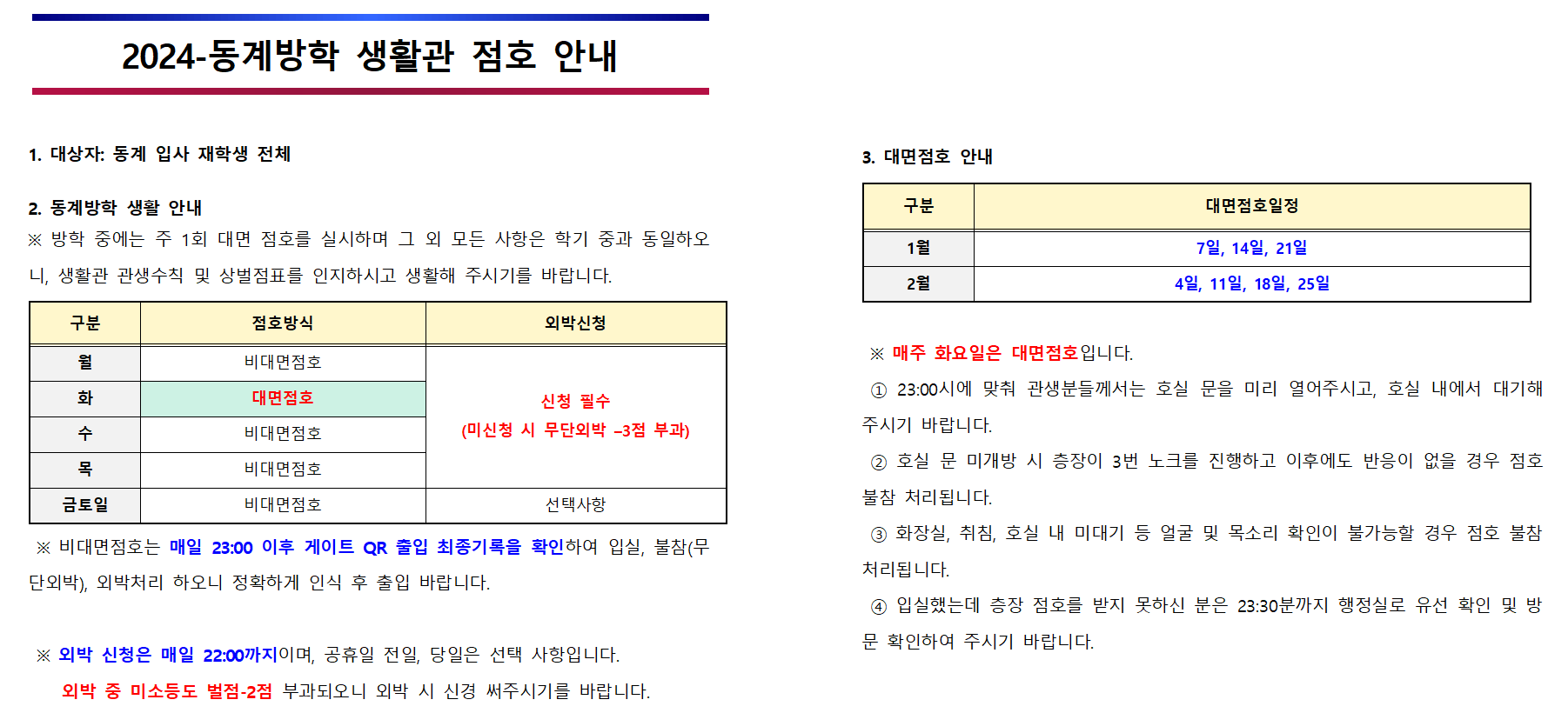 | 4 | 2025-2학기 생활관 비대면점호 안내 | 생활관관리자 | 2025-10-13 | |